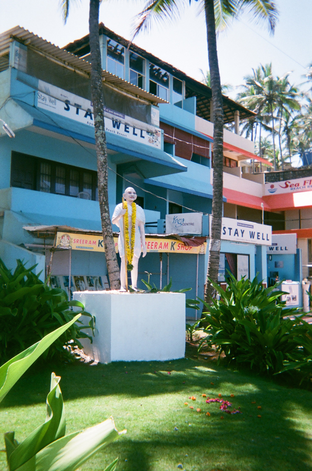 ケララ空港から車で南下しコーバラムへ。この日はガンジーの誕生日らしく、時折お祝いイベントとすれ違う。