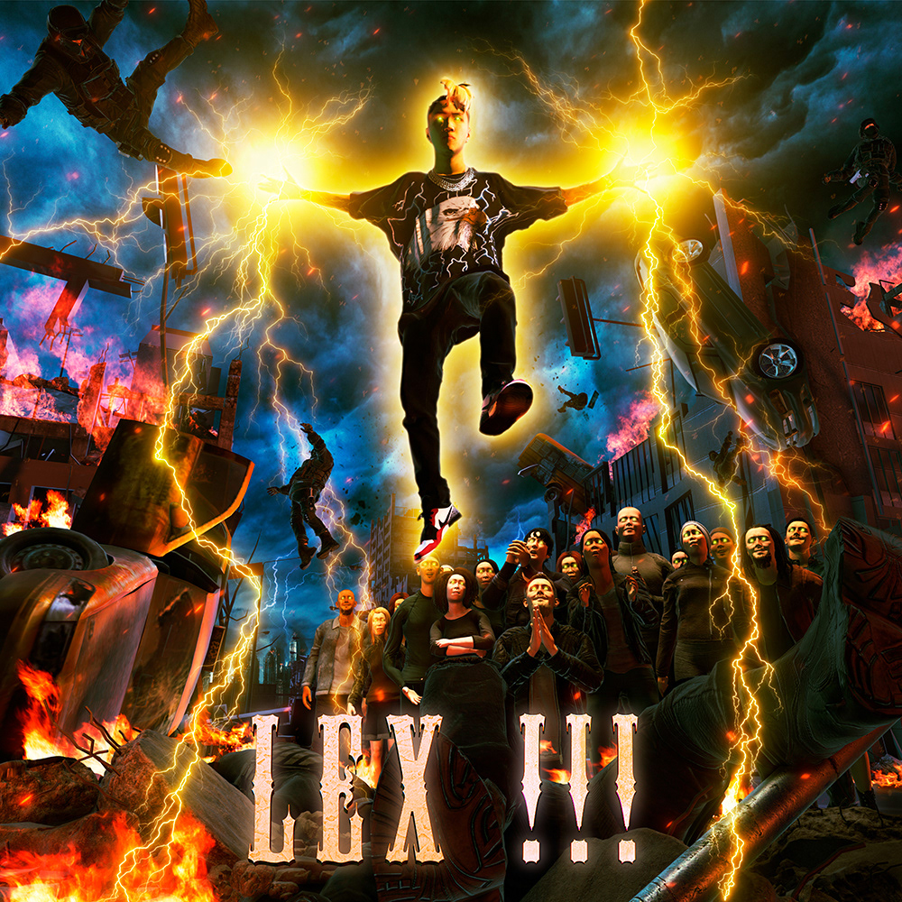LEXのアルバム「!!!」のアートワークを制作。旧体制を破壊し、新人類を導くLEX。